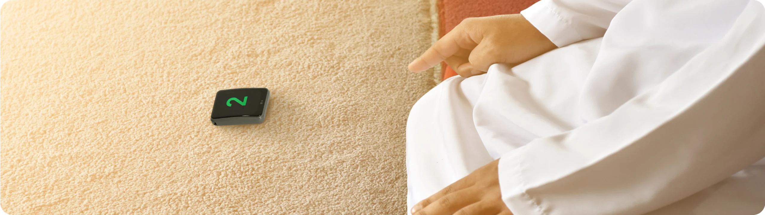 Layar sentuh yang dioperasikan dengan telapak tangan untuk menghitung rakaat saat sujud. Dirancang dengan bentuk mini, tipis, dan layar melengkung, sehingga memberikan kenyamanan maksimal bagi pengguna. Ringkas dan portabel, sehingga mudah dimasukkan kedalam saku dan dibawa kemana saja.